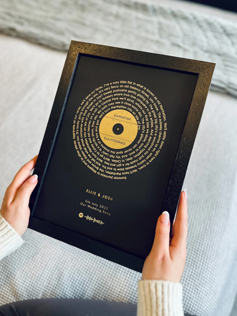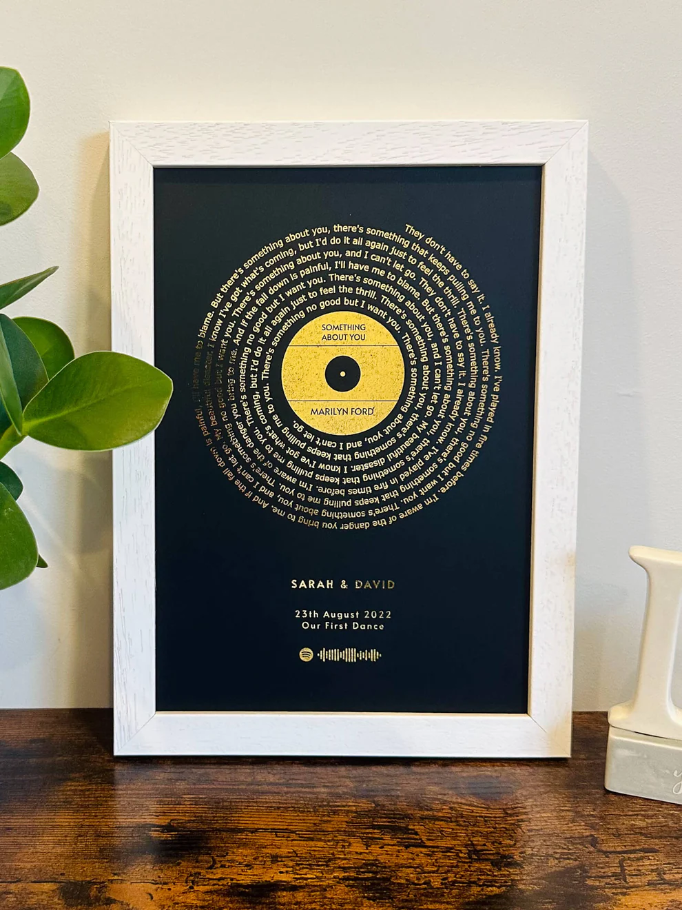 Fully customised with your chosen song title, artist, names, date & a special phrase